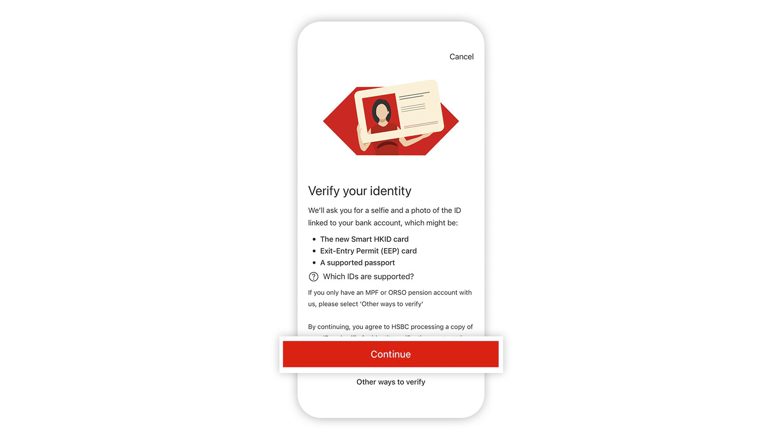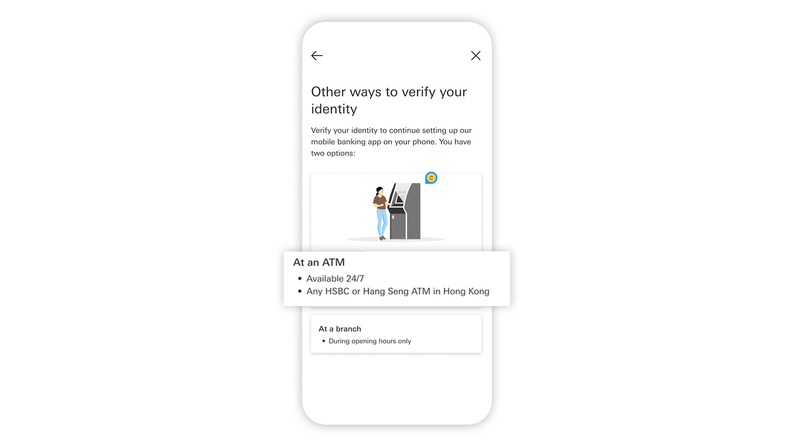 Please note, after setting up the HSBC HK App, you may need to further verify your identity before you can enjoy full access to HSBC Online and Mobile Banking services.