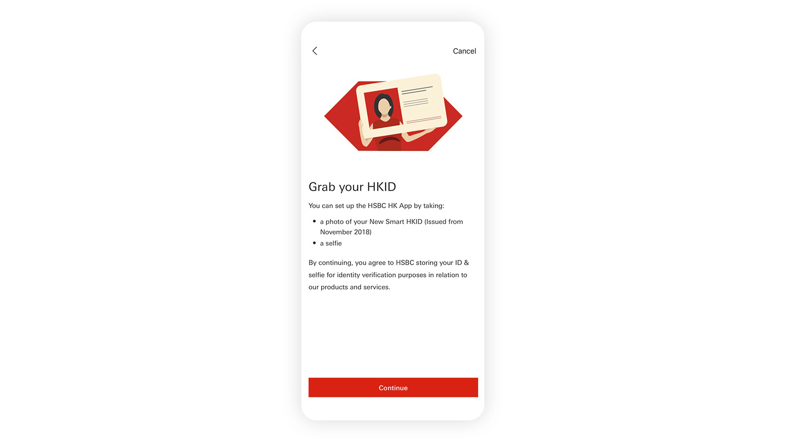 You can set up the HSBC HK App simply with your valid HKID or supported passport and a selfie. Please follow these tips to proceed.