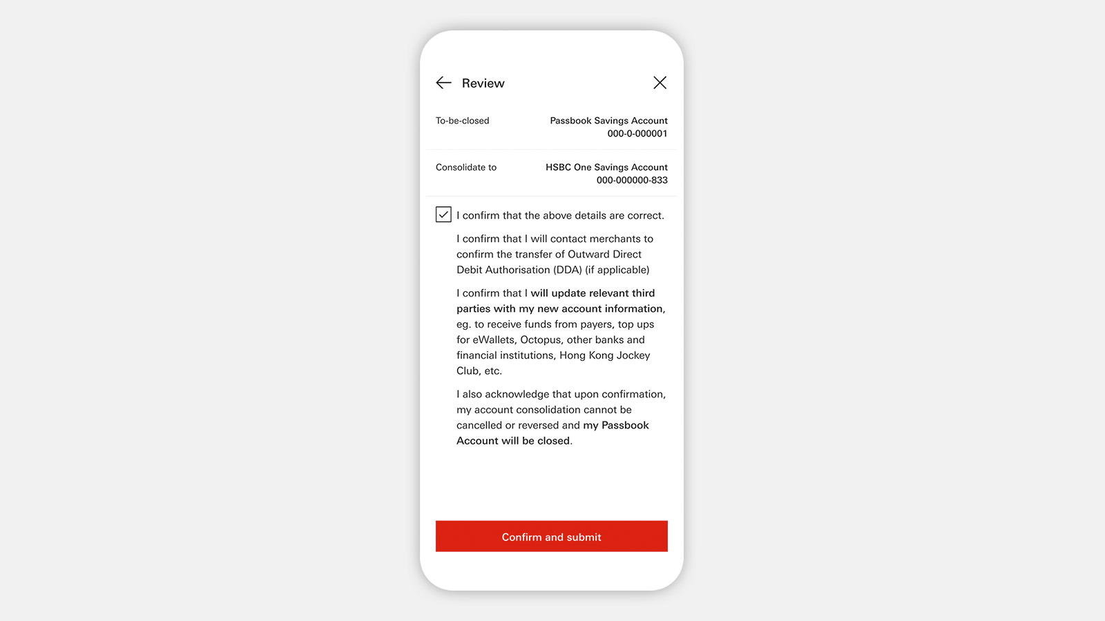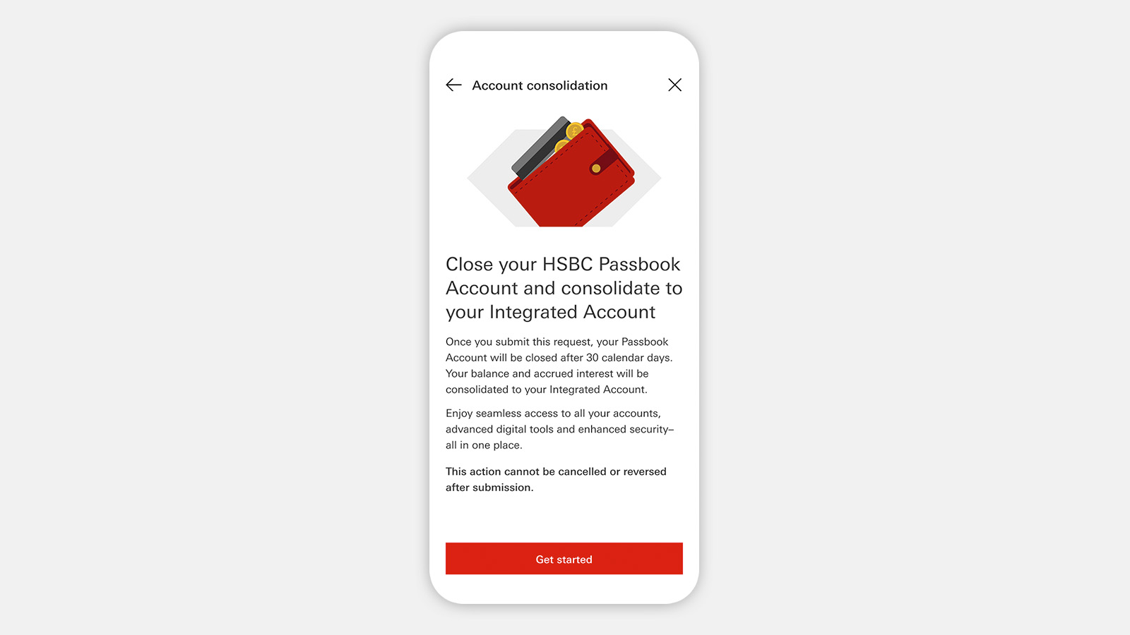 We've simplified the steps to consolidate your Passbook Account into an Integrated Account. The whole process can now be completed within the HSBC HK App, in a few minutes.