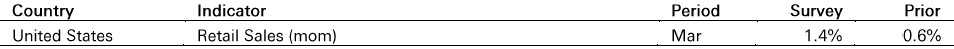 In the US, retail sales likely rose 1.4% mom in March, after a 0.6% mom gain in February, boosted by higher gasoline prices, but the underlying real spending may have been soft.