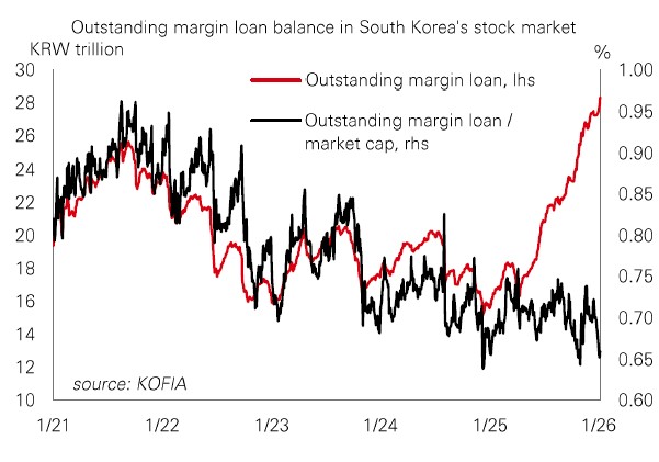 But there is some cause for caution. Macro and policy uncertainty, as well as geopolitical tensions could spur volatility. And in South Korea, a rapid rise in the amount of margin debt in use in the market – at a record level of over KRW 28bn (~USD 19bn) – could also spark volatility if sentiment cools (although current levels are modest relative to Korea’s market cap). A diversified approach in Asia, with selectivity across countries and sectors, can help capture the growth upside while cushioning against downside risks.