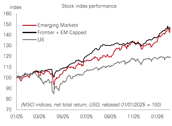 Further afield, countries like Saudi Arabia, United Arab Emirates, Egypt, and Kazakhstan, are all seeing a compelling mix of continuing investment programmes, improving macro conditions, and eye-catching valuations. The combination of local idiosyncrasies, solid earnings growth, and relatively low volatility could keep frontiers close to the front in 2026.