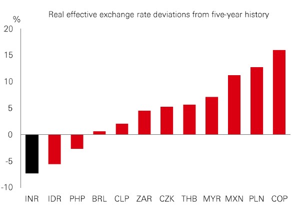 India’s stocks missed out on the recent rally in emerging markets, and the rupee has also taken a hit. Both might now be at a turning point. News that a US-India trade deal is in the works – with US tariffs set to fall to 18% – has sparked a surge in India’s stocks. A deal should ease geopolitical tensions, remove headwinds to Indian local assets, and boost market sentiment. This follows a trade deal with the EU last month. On India’s domestic front, the recent Union Budget saw a lower fiscal deficit target for FY2027, underscoring policy discipline. Extra infrastructure spending and support for manufacturing – particularly in rare earths and semiconductors – should help corporate profits. For fixed income assets, downward pressure on inflation should keep real yields elevated, enhancing the global appeal of Indian government bonds. And the good news for international investors is that an undervalued rupee provides scope for positive FX returns. |