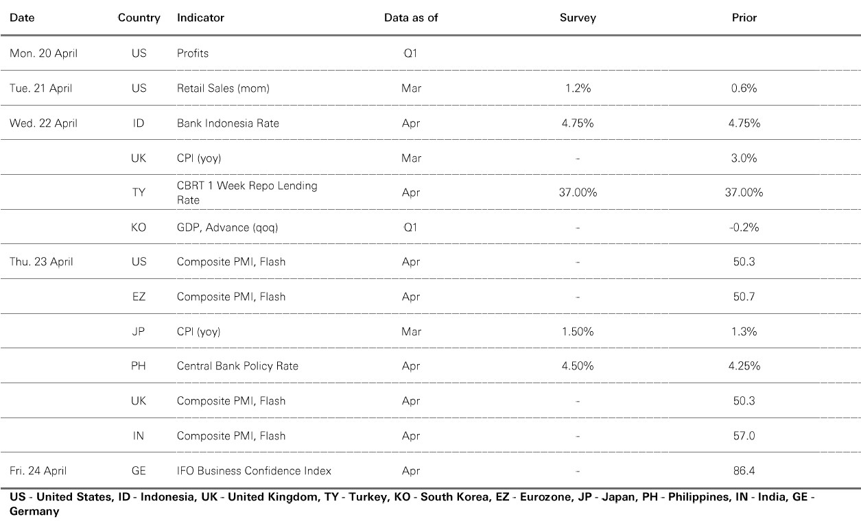 The value of investments and any income from them can go down as well as up and investors may not get back the amount originally invested. Past performance does not predict future returns. The level of yield is not guaranteed and may rise or fall in the future. Past performance does not predict future returns. For informational purposes only and should not be construed as a recommendation to invest in the specific country, product, strategy, sector, or security. Diversification does not ensure a profit or protect against loss. Any views expressed were held at the time of preparation and are subject to change without notice. Any forecast, projection or target where provided is indicative only and is not guaranteed in any way. You cannot invest directly in an index. Source: HSBC Asset Management, Factset, Bloomberg, Macrobond. Data as at 7.30am UK time 17 April 2026.