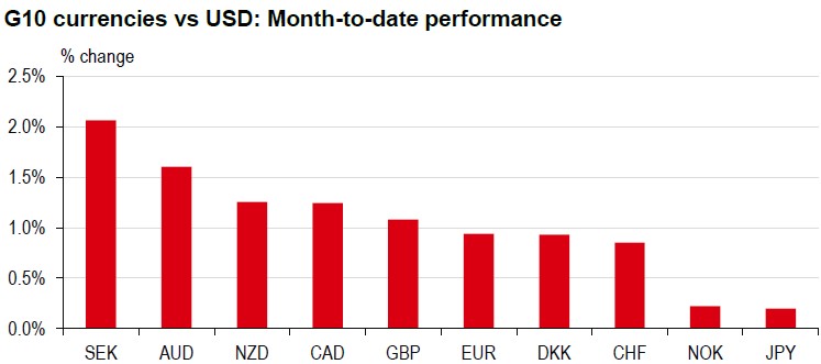 • USD weakness has been evident across the G10 space so far in December, with the SEK leading the gains.