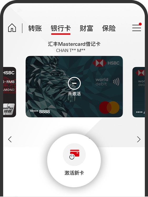 - 借记卡一经激活,即表示您同意相关条款及细则,并接纳激活新卡信件上所打印的预设每天消费限额。在激活该卡后,您可因应需要随时登录HSBC HK app内的"管理借记卡"页面或拨打印在卡背的热线号码,调低该卡的消费限额。