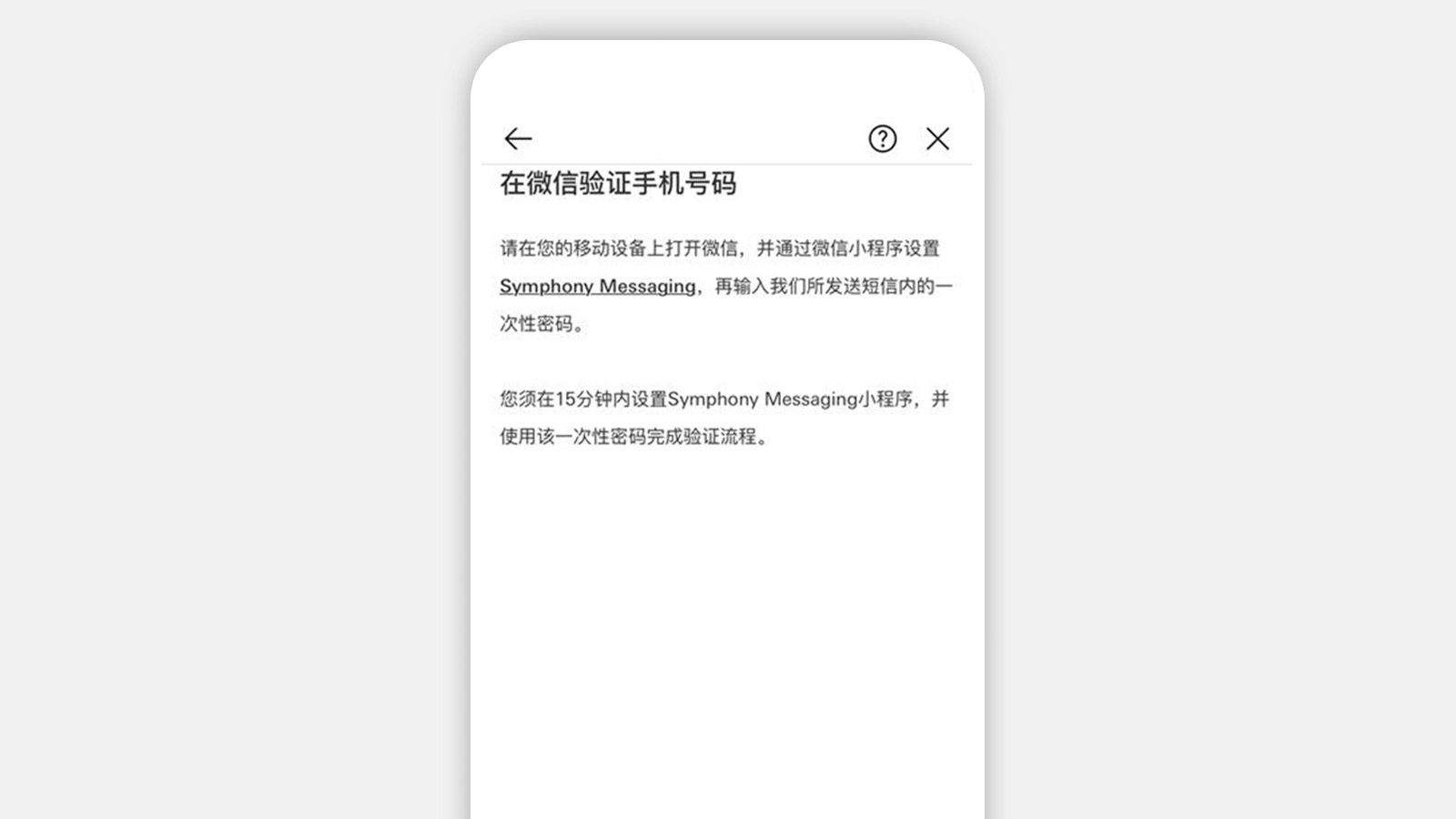 核对个人联系连系资料,然后选择”在微信验证号码”,并开启微信。在微信内的”发现”中搜寻并设置Symphony Messaging小程序,然后阅读并接受Symphony的条款及细则。