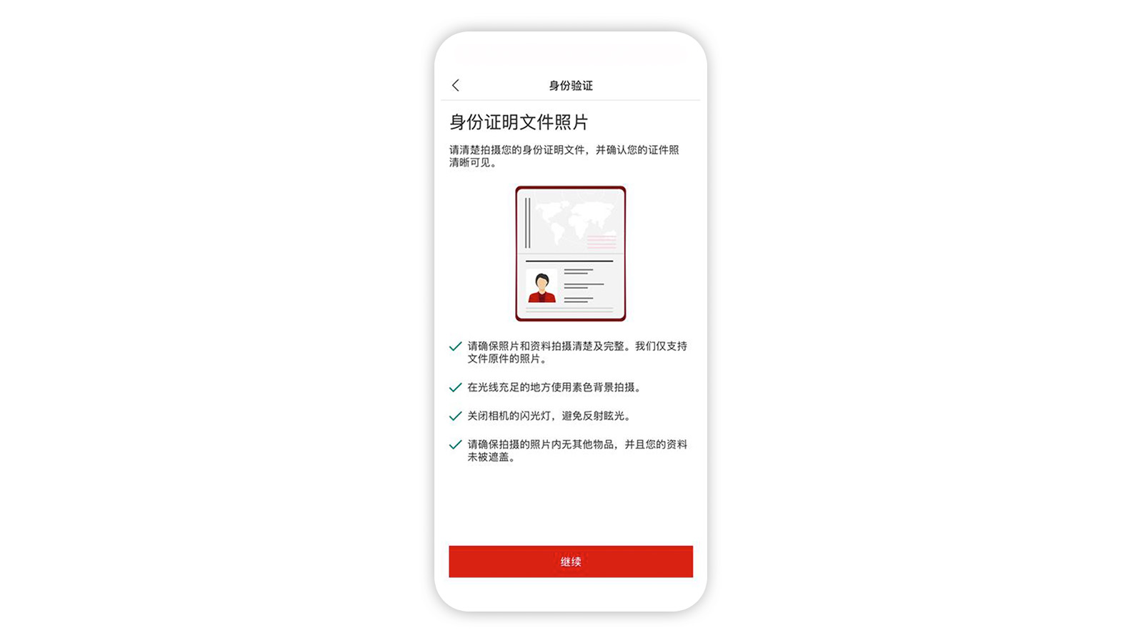 只要使用有效且适用的香港身份证/护照及自拍照注册一次,即可开始使用HSBC HK App。您可按照以下提示,轻松完成拍摄。