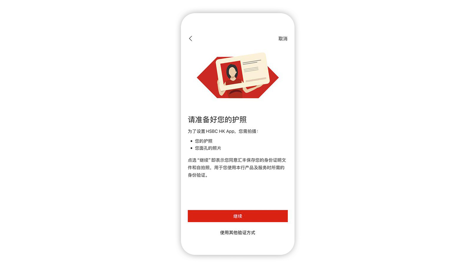 请注意,当您设置HSBC HK App后,您可能需要进一步验证身份以使用汇丰网上及流动理财的全部服务。