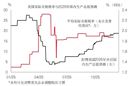 2025年围绕美国经济的讨论以两个主题为主:关税和人工智能。年初,市场的增长预期强劲,且持续向上。但投资者在4月2日“解放日”受到冲击,因美国总统特朗普宣布大幅加征关税。市场随即向下,增长预期亦大幅下调。