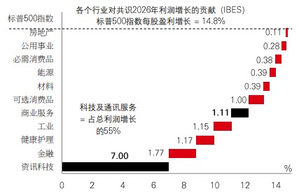 利润增长急升和人工智能热潮持续,推动了今年大型科技股的强劲表现,同时将美股推向新高。明年的前景亦受到支撑,预期科技和通讯服务业将共同贡献55%总利润增长。