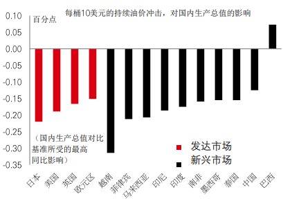 从油价冲击的角度来说,价格波动的规模、速度和持续时间,将决定增长与通胀、企业利润及投资气氛所受的影响。 但各国所受的冲击各不相同。
