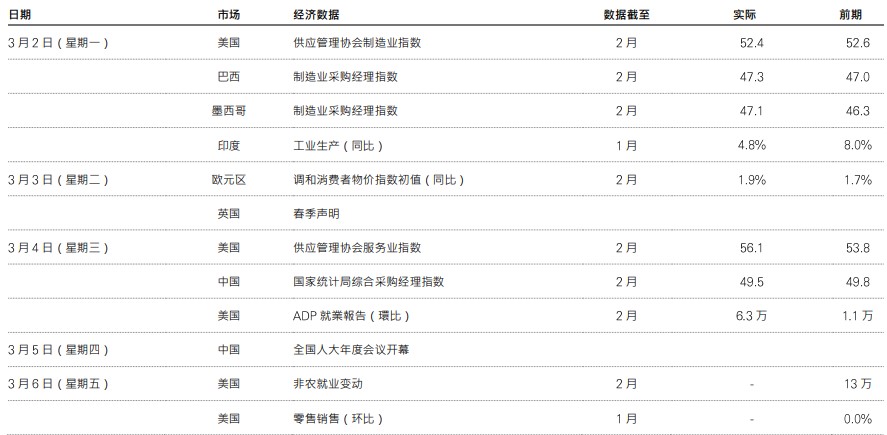 过往表现并非未来回报指标。 息率水平不获保证,日后可升或可跌。 仅供参考,不应视为投资特定国家、产品、策略、行业或证券的建议。 多元化并不能确保盈利或防止亏损。 所表达的任何观点均截至编制为止,如有更改,恕不另行通知。 指数回报假设所有分派再投资,不反映费用或开支。 您不能直接投资于指数。 所提供的任何预测、预计或目标仅供参考,概非任何形式保证。 成本可能因汇率波动而变化。 资料来源:汇丰投资管理。 Macrobond、彭博及牛津经济研究院。 数据截至2026年3月6日(英国时间上午7时30分)。