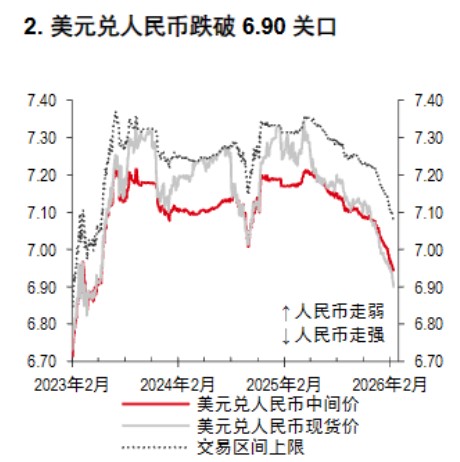 今年以来,人民币兑美元升值超过 1%,美元兑人民币 33 个月来首次跌破 6.90(图 2)。有利的季节性资本流动以及中国的战略目标,特别是人民币国际化,料将在整个 2026 年对人民币提供持续支撑。