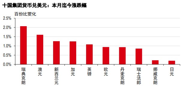 瑞典克朗的升值主要受到两方面因素支撑:一是欧洲市场风险情绪改善;二是受益于 800 亿瑞典克朗扩张性财政预算,市场对瑞典经济增长预期上调。