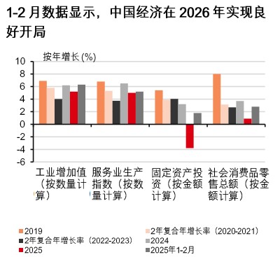 近期数据显示,在2025年制造业、基建和房地产领域出现罕见收缩之后,固定资产投资开始复苏。此轮回升主要受新增政府资金支持推动,包括8,000亿元人民币的新型政策性金融工具,以及2026年预算中提前下达的债券额度。地方政府现在拥有更多用于基建和城市发展的“种子资本”——去年的5,000亿元人民币资金撬动了7万亿元人民币的项目投资(人民网,2025年11月2日),预计今年也将产生类似乘数效应。持续推进的地方政府债务置换及拖欠款偿还,也有望进一步缓解流动性压力、提振企业信心,并吸引更多私人资本参与公共项目。