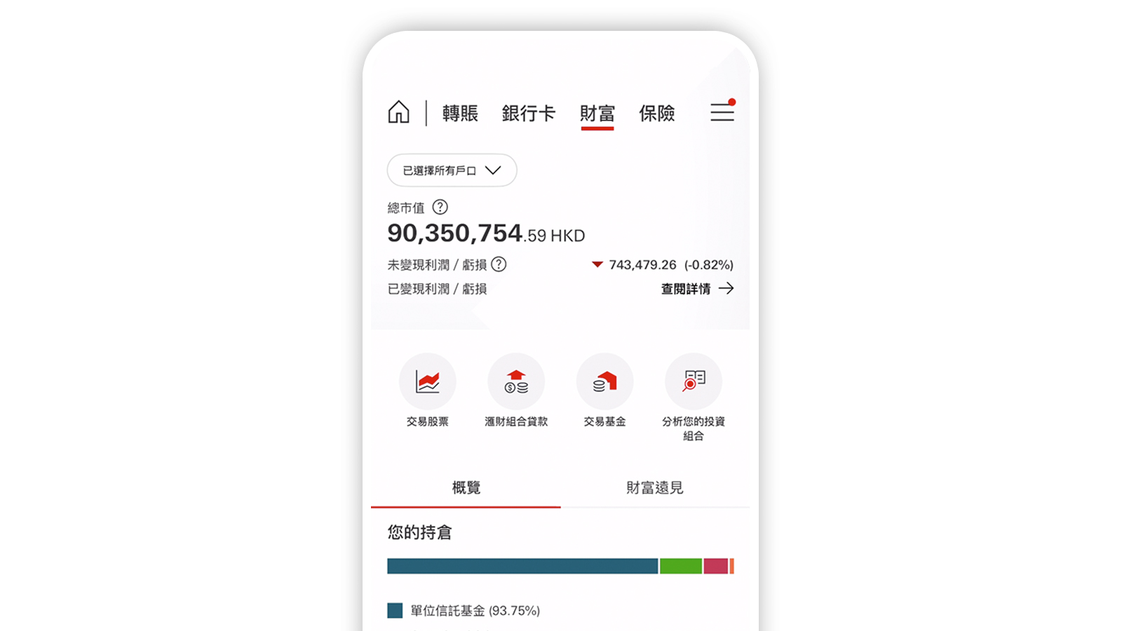介面清晰易用,所有資產一目了然,助您隨時深入了解投資組合的波動狀況及風險水平。