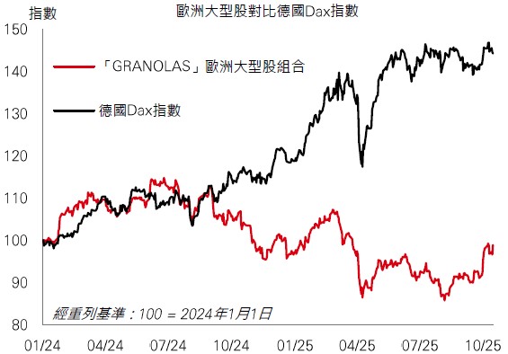 但在是次調整後,或有空間可支持表現勝預期。7月達成的美歐貿易協議為企業帶來更大確定性,利率環境亦向好,尤其是銀行。今年股市上揚,但一些地區的估值仍然相對較低。GRANOLAs指數包括當中眾多股票,其中一些屬健康護理和奢侈品行業。