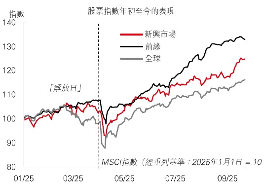信貸升勢為今年環球投資回報的焦點。某程度上這是由寬鬆金融環境、盈利較預期佳、資產負債表向好及槓桿穩定所推動。關稅對企業利潤率的影響至今有限,亦增強了市場信心,而聯儲局最近在通脹高企下決定減息,進一步鞏固了正面氣氛。