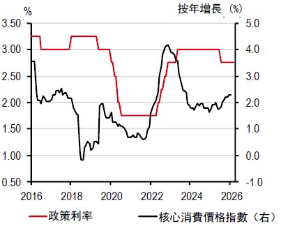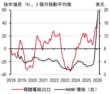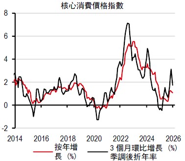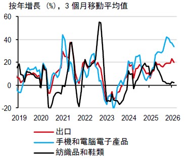 2025 年第四季國內生產總值按年增長接近7%,主要受電子行業強勁表現推動。因此,我們最近將2026 年國內生產總值增長預測從2%上調至2.9%,處於政府修訂後的2%-4%預測區間的中位水平。不過,若中東局勢持續發酵,經濟增長面臨的下行風險可能會加劇。